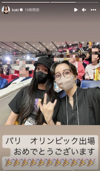 姉妹であるkokiさんと一緒に日本代表とスロベニア代表の試合を観戦し、パリオリンピックの出場を決めた時の歓喜の様子です