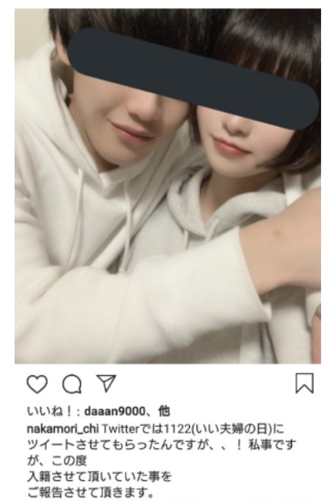 藤咲凪さんは自身のSNSで2019年11月22日(いい夫婦の日)に一般男性と結婚したことをツーショット写真で報告していました。