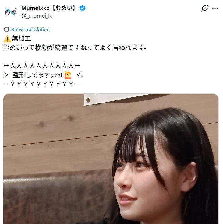 なんと!無加工でAI級に可愛いと言われるむめいちゃんは整形をしていた事実が発覚しました!