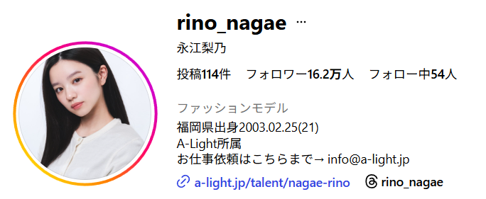 永江 梨乃(ながのりり)さんは現在21歳で福岡県出身のモデルさんです。