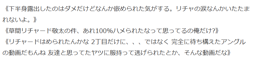 結果的に釈放された形となりましたが、釈放時のリチャードの様子と流出した映像から、世間では『リチャードははめられたのでは?』とリチャードを擁護する意見が多く出ています。